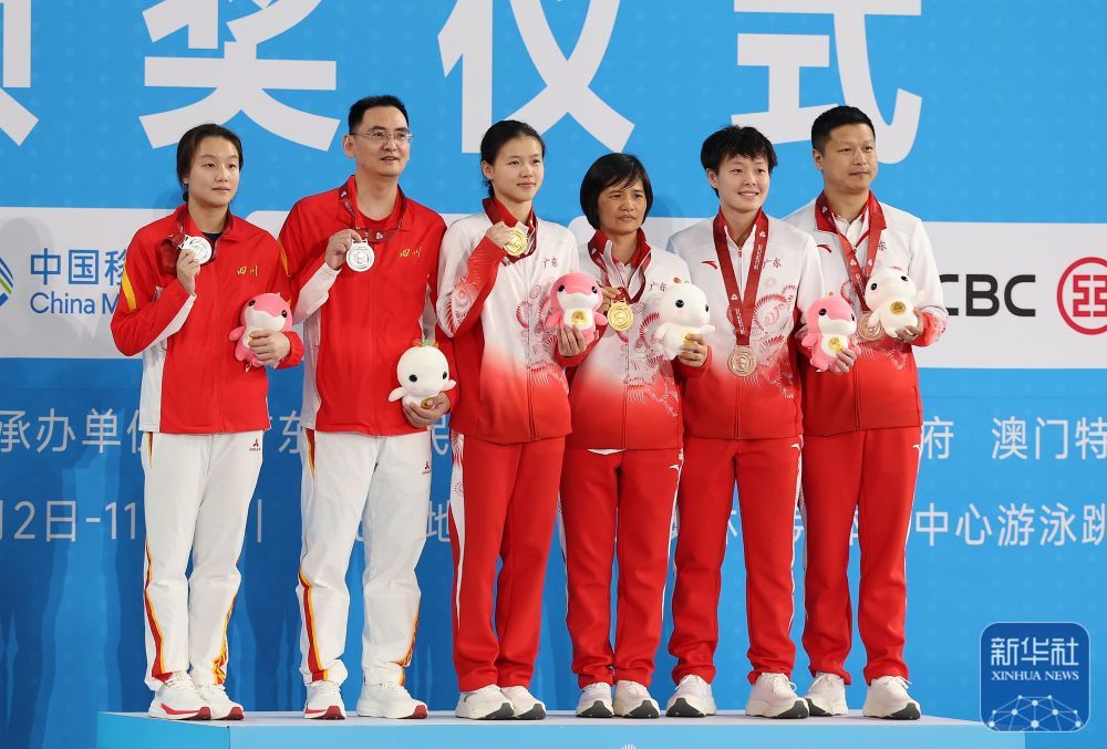 11月11日,第十五届全运会跳水项目女子3米板决赛在广州举行。最终,广东队选手林珊获得冠军,四川队选手陈佳获得亚军,广东队选手陈艺文获得季军。 ↑ 获得冠军的广东队球员林珊(左三)、获得第二名的四川队球员陈佳(左)、获得第三名的广东队球员陈艺文(右二)在颁奖典礼上与教练合影。新华社记者 杨世耀 摄 ↑ 广东队球员林珊获胜后向观众表示祝贺。新华社记者肖一久摄↑广东队球员林珊在比赛中。新华社记者唐毅摄↑广东队球员林珊在比赛中。新华社记者唐毅摄↑广东队球员林珊在比赛中。新华网摄s社记者肖一久↑广东队球员林珊在比赛中。新华社记者肖一久摄↑广东队球员林珊在比赛中。新华社记者唐毅摄↑广东队球员林珊在比赛中。新华社记者肖一久摄↑广东队球员林珊在比赛中。新华社记者杨世耀摄↑广东队球员林珊(后)赛后拥抱队友陈艺文。新华社记者肖一久摄↑广东队球员林珊(左)与陈艺文赛后。新华社记者肖一玖摄↑四川队球员陈佳在比赛中。新华社拉比记者唐毅↑比赛中的广东队球员陈艺文。新华社记者唐毅摄↑比赛中的广东队球员陈艺文。新华社记者唐毅摄↑广东队球员陈艺文杜尔参加比赛。新华社记者唐毅摄↑四川队球员陈佳在比赛中。新华社记者唐毅摄↑比赛中的广东队球员陈艺文。新华社记者唐毅摄↑四川队球员陈佳在比赛中。新华社记者唐毅摄↑比赛中的广东队球员陈艺文。新华社记者唐毅摄↑四川队球员陈佳在比赛中。新华社记者唐毅摄↑广东队球员陈艺文在比赛中溅水。新华社记者肖一玖摄↑四川队球员陈佳在比赛中。新华社记者 肖一久 摄 ↑ 比赛中的广东队球员陈艺文。新华社记者肖一玖摄↑四川队球员陈佳在比赛中。新华社肖记者 摄壹玖↑广东队球员陈艺文在比赛中落水。新华社记者 肖一久 摄 ↑ 比赛中的广东队球员陈艺文。新华社记者肖一玖摄↑四川队球员陈佳在比赛中。新华社记者肖一玖摄↑四川队球员陈佳在比赛中。新华社记者 杨世耀 摄 ↑ 广东队球员陈艺文在比赛中。新华社记者 杨世耀 摄 ↑ 四川队球员杨瑞林在比赛中。新华社记者 杨世耀 摄 ↑ 广东队球员林珊在比赛中。新华社记者 杨世耀 摄 ↑ 广东队球员林珊在比赛中。新华社记者杨诗瑶摄↑四川队球员陈佳出现在比赛前。新华社记者肖一久摄↑广东队球员陈艺文赛前亮相。河粉新华社记者肖一久↑ 广东队球员林珊赛前现身。新华社记者肖一九摄↑广东队球员权红婵前来观赛。新华社记者 肖一久 摄