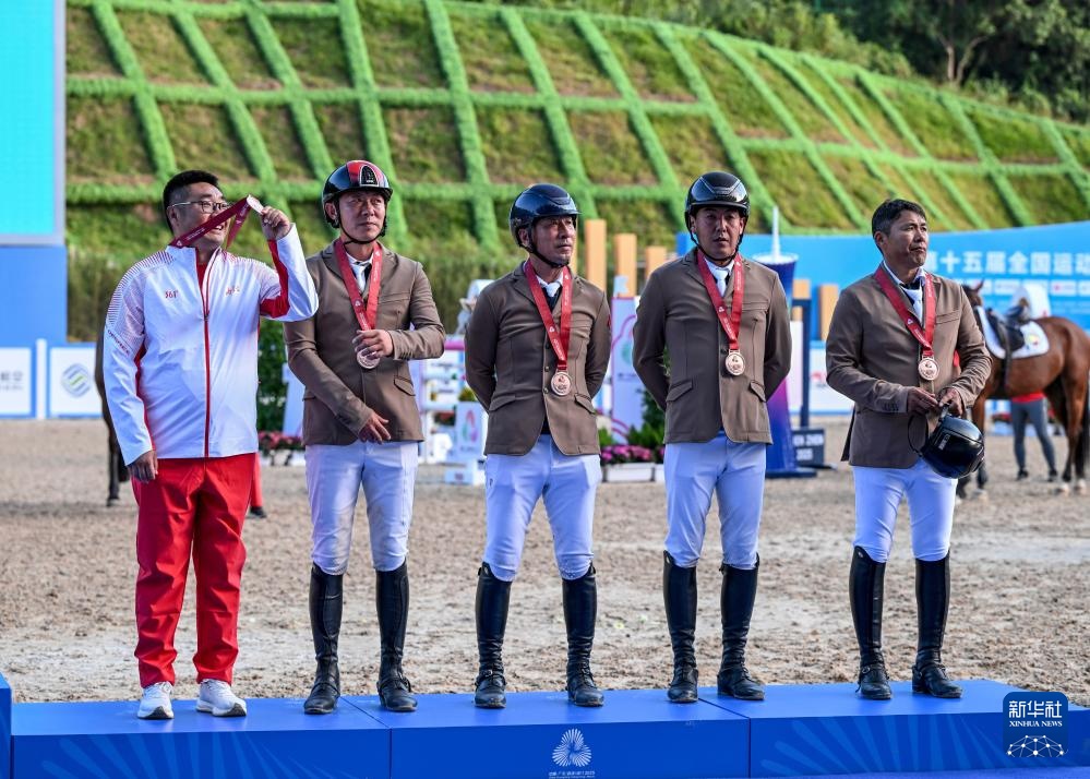 11月17日,第三名内蒙古队球员、教练员出席颁奖仪式。当日,第十五届全运会马术场地障碍团体比赛在广东深圳举行。广西队获得冠军,广东队获得亚军,内蒙古队获得季军。新华社记者冯凯华摄 11月17日,蒙古国第三名室内选手骑乘胜利。当日,第十五届全运会马术场地障碍团体比赛在广东深圳举行。广西队获得冠军,广东队获得亚军,内蒙古队获得季军。新华社记者冯凯华摄 11月17日,冠军广西队(中)、亚军广东队(左)、季军内蒙古队(右)在颁奖仪式上。同日,第十五届全国运动会马术场地障碍团体比赛mes在广东深圳举办。广西队获得冠军,广东队获得亚军,内蒙古队获得季军。新华社记者冯凯华摄 11月17日,广西队冠军队员策马奔赴胜利。当日,第十五届全运会马术场地障碍团体比赛在广东深圳举行。广西队获得冠军,广东队获得亚军,内蒙古队获得季军。新华社记者冯凯华摄 11月17日,广西冠军球员、教练员在颁奖仪式上。当日,第十五届全运会马术场地障碍团体比赛在广东深圳举行。广西队获得冠军,广东队获得亚军,内蒙古队获得季军。新华社记者 冯凯华 摄 11月17日,球员、教练员颁奖典礼上获得亚军的广东队。当日,第十五届全运会马术场地障碍团体比赛在广东深圳举行。广西队获得冠军,广东队获得亚军,内蒙古队获得季军。新华社记者冯凯华摄 11月17日,广西队冠军队员策马奔赴胜利。当日,第十五届全运会马术场地障碍团体比赛在广东深圳举行。最终广西队获得冠军,广东队获得亚军,内蒙古队获得季军。新华社记者 冯开华 摄