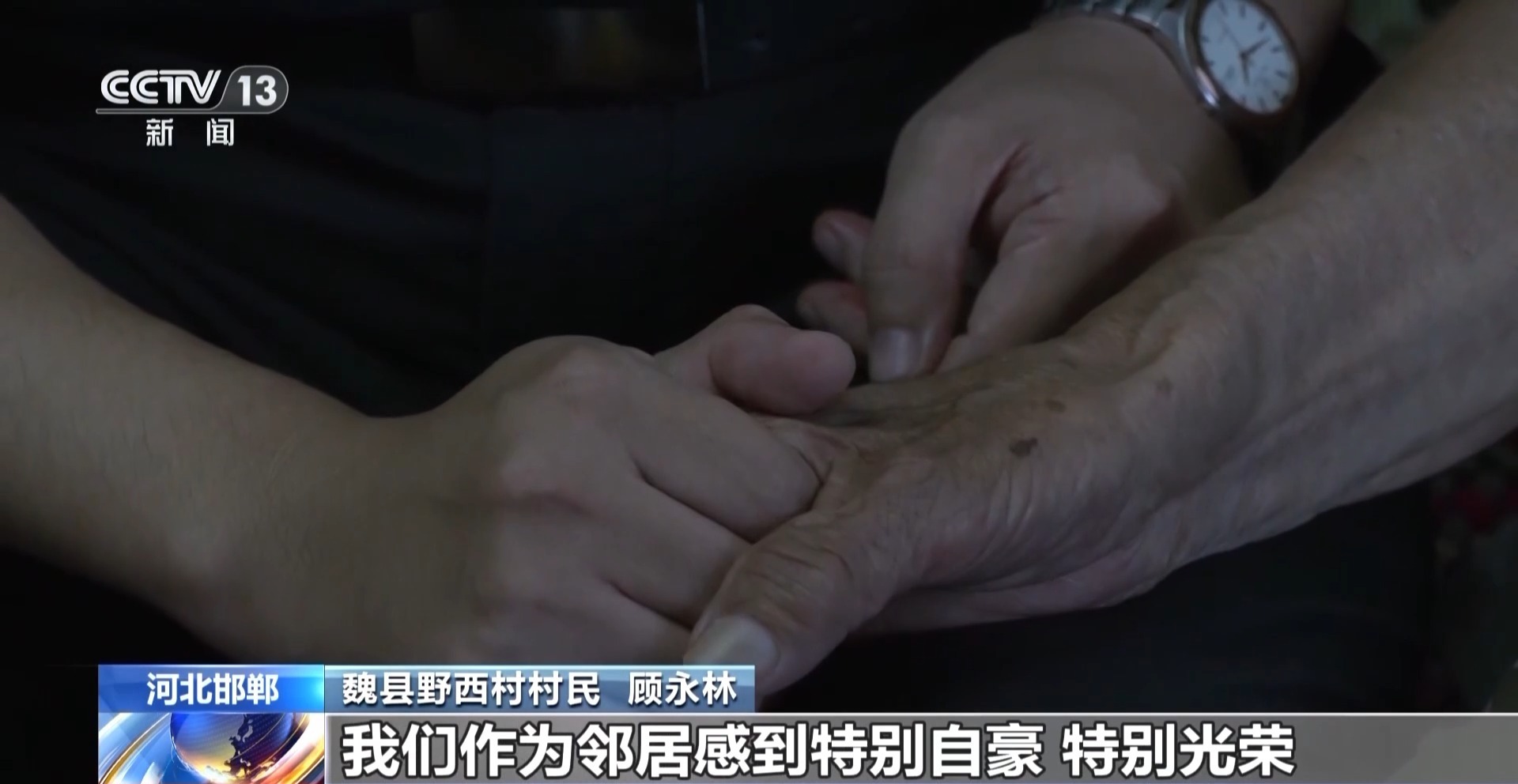 韦县YEXI村党秘书秘书Li Qingguo:先生GU参加了反日庆典80周年,并与秘书长握手。村里的每个人都看着它,这是非常有趣和自豪的。